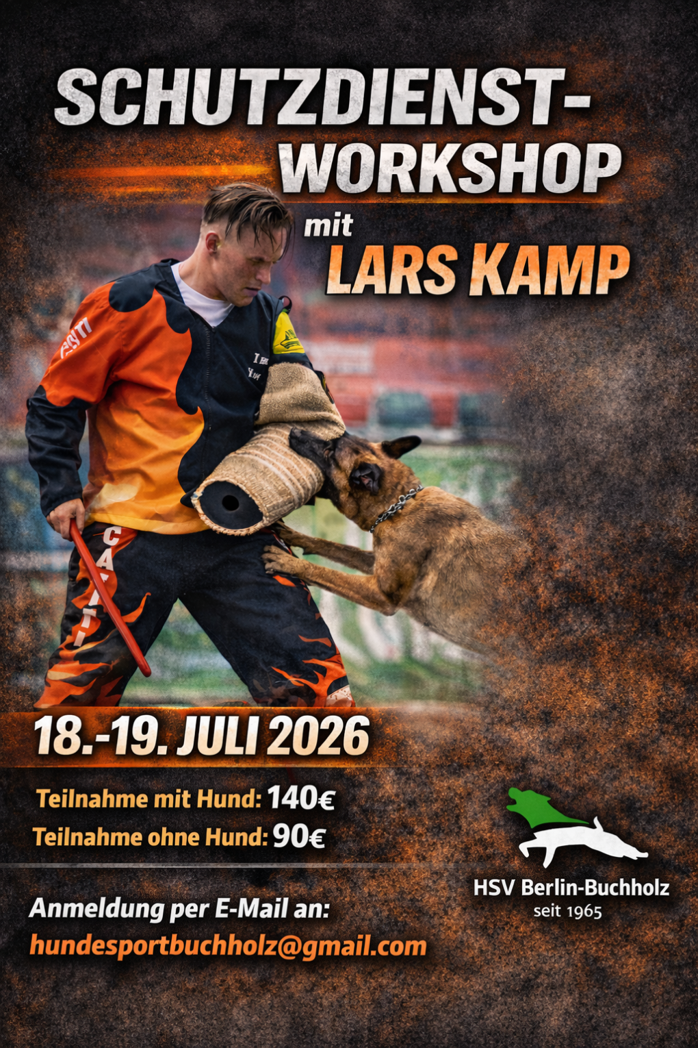 Der HSV Berlin Buchholz e.V. freut sich, euch einen intensiven Schutzdienst-Workshop mit Lars Kamp anbieten zu können! 💪🐕